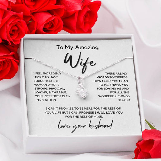 Wife: Message Card and Incredible Love Knot Necklace, Fast Free Shipping.