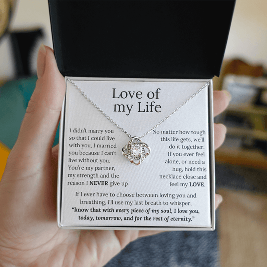 Wife: Message Card and Incredible Love Knot Necklace, Fast Free Shipping.
