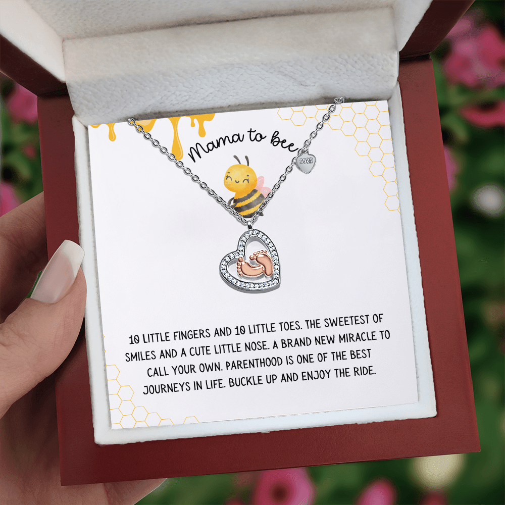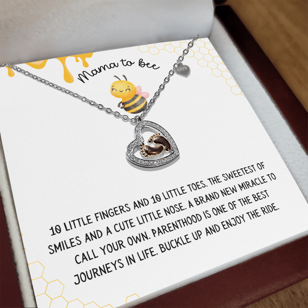 Imagine her reaction to receiving this heartfelt symbol of love, family, and precious beginnings. The Baby Feet Heart Necklace features a sparkling heart-shaped frame adorned with shimmering cubic zirconia, surrounding a delicate pair of rose gold baby feet. A touching tribute to motherhood and new life, this necklace is the perfect way to celebrate a new mom, a cherished child, or a growing family.