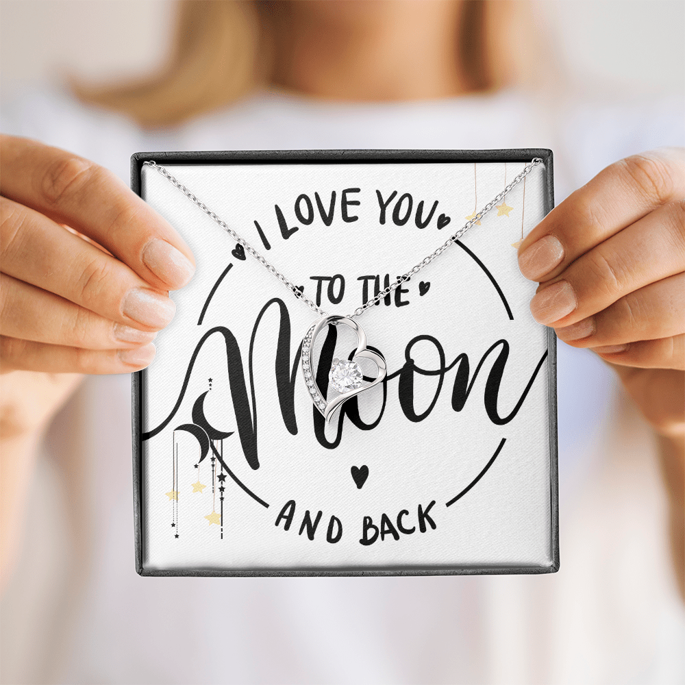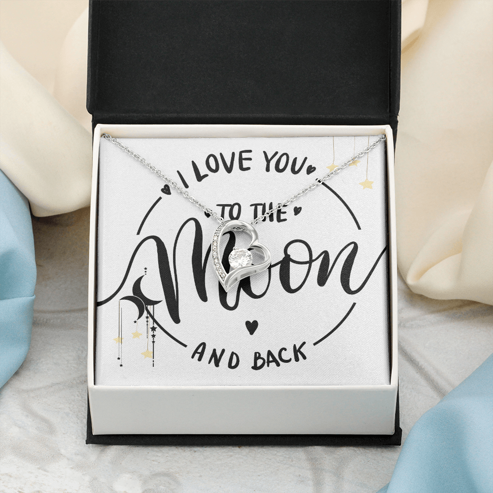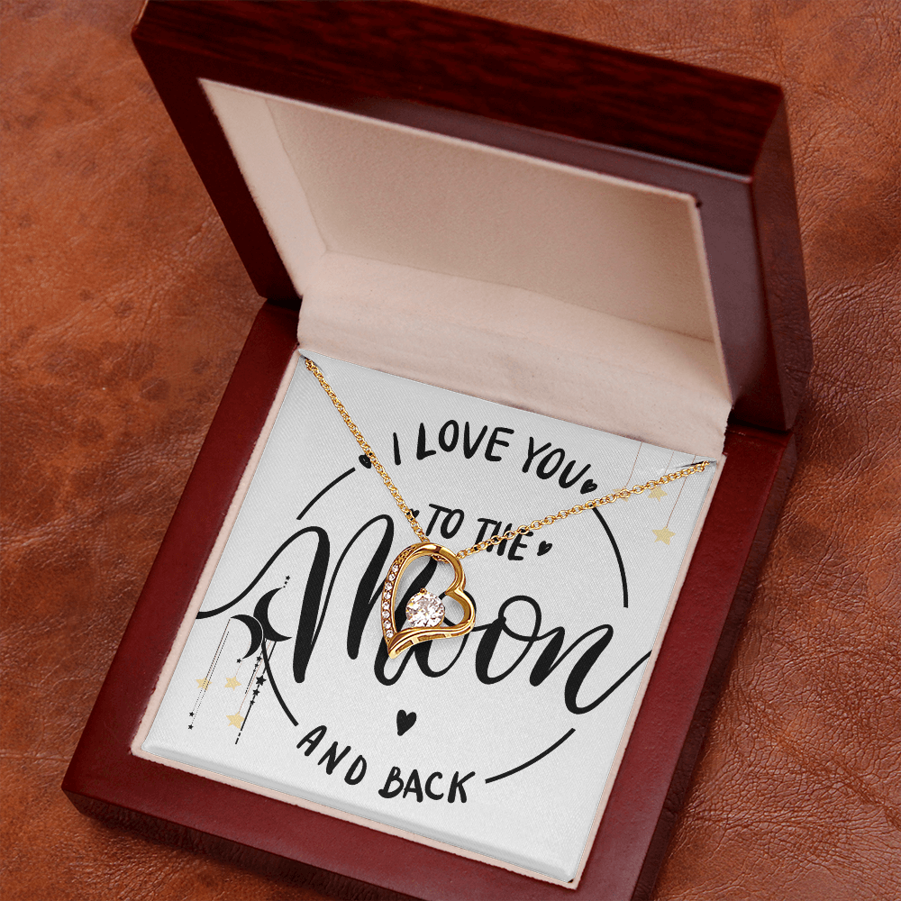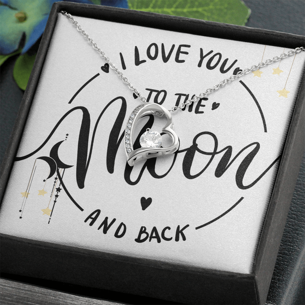 ❤️ To the Moon and Back – Heart Necklace and Message Card for that someone you love the most.