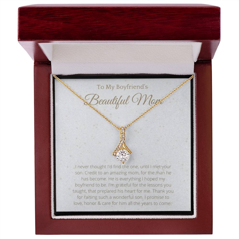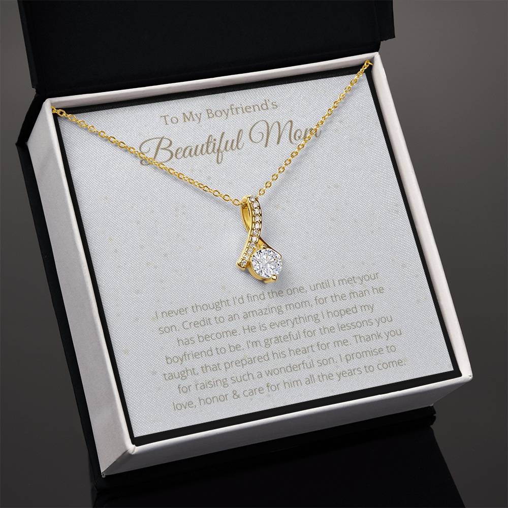 Imagine her reaction when she opens this stunning gift! The Alluring Beauty necklace features a petite ribbon shaped pendant that is sure to dazzle your special someone. Whether it's a birthday or anniversary, make sure to get her a gift she will love for years to come.