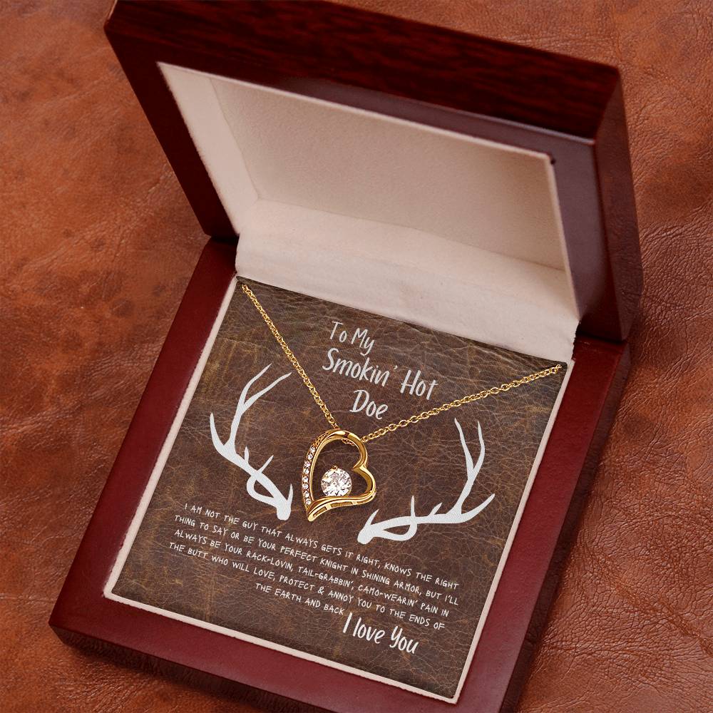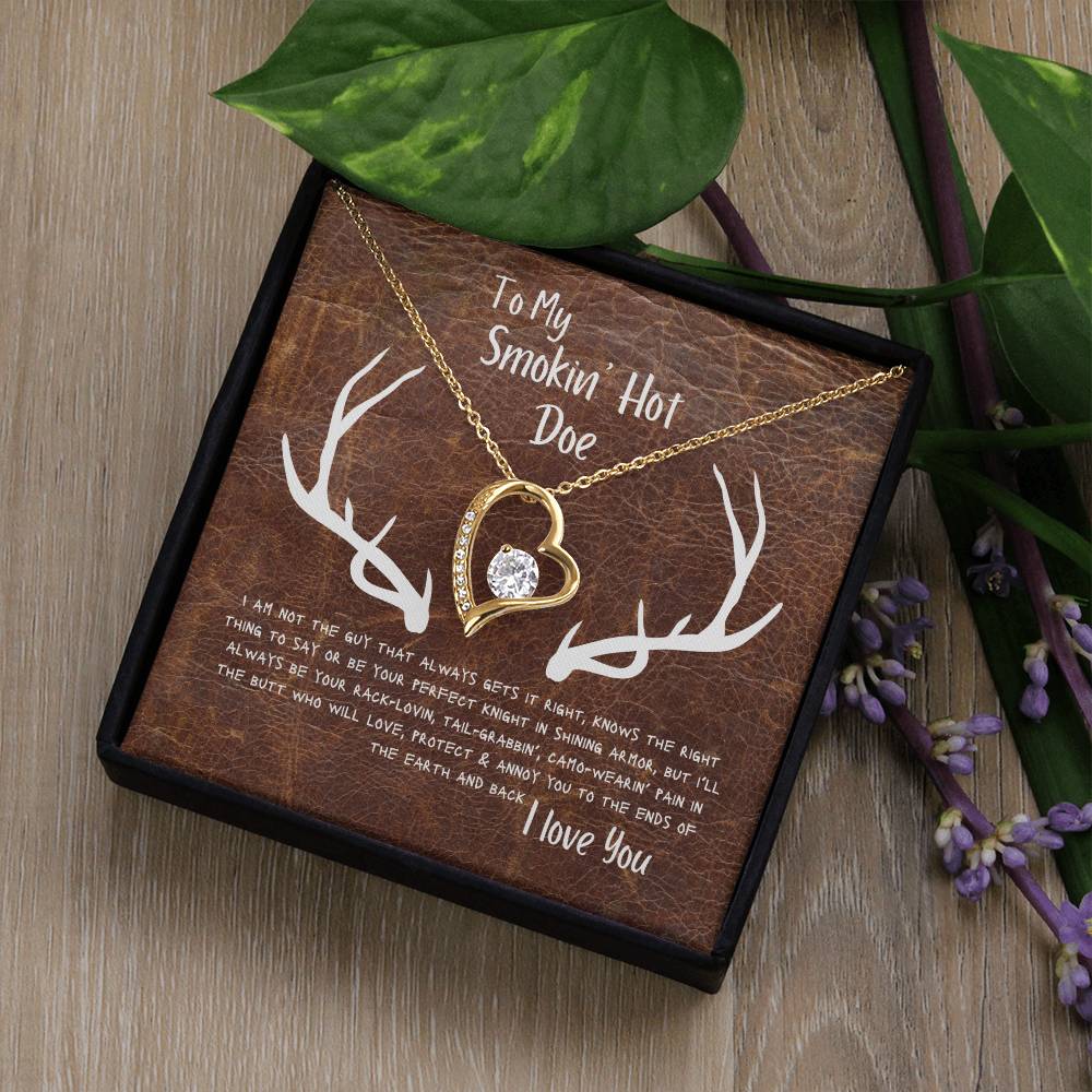 The dazzling Forever Love Necklace is sure to make her heart melt! This necklace features a stunning 6.5mm CZ crystal surrounded by a polished heart pendant embellished with smaller crystals to add extra sparkle and shine. Beautifully crafted with either a white gold or yellow gold finish, this is a classic gift she can enjoy every day.